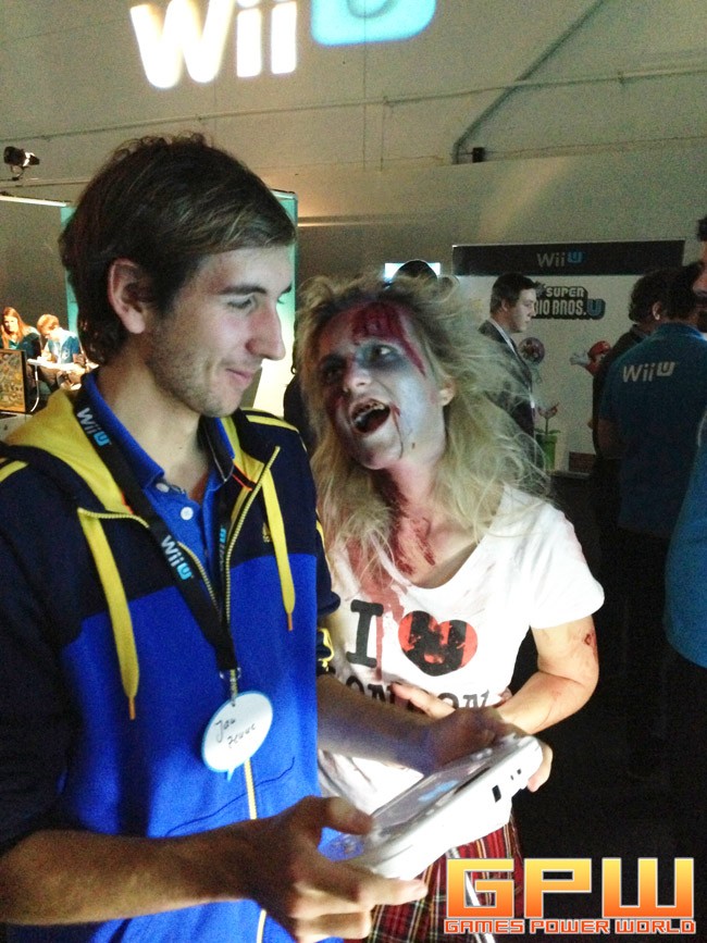 Wii U Experience Tour 2012 In den letzten Tagen lud Nintendo diverse Pressevertreter ein, die Wii U vor ihrem offiziellen Europa-Launch am 30.11 noch einmal ordentlich zu "experiencen". Mit dabei waren unter anderem: Nintendo Land, New Super Mario Bros. U, ZombiU, Sonic & Sega All-Stars Racing 2 und viel, viel Chili con Carne. Und Hot Dogs. Denn wer zockt muss und kann schließlich auch essen. Da viele der gezeigten Titel leider "nur" Portierungen von bereits erhältlichen Spielen waren (Batman: Arkham City - Armored Edition, Mass Effect 3, Trine 2 etc.) waren wir besonders auf Nintendo Land und New Super Mario Bros. U gespannt. Die spielbare Version von letzterem sah bereits endgültig aus, so gab es schon die meisten Welten zu bereisen, die natürlich klassisch gehalten wurden: Eis, Wüste, Insel/Meer...ihr kennt das ja. Doch sicherlich gibt es auch wieder einige Geheimwelten zu entdecken, wie zuletzt der 3DS-Ableger gezeigt hat. Mario präsentierte sich selbstverständlich erneut von seiner spaßigsten Seite, was wir im Mehrspielermodus erfahren durften. Wie bekannt kann man hier mit vier Wii-Fernbedienungen zusammen die Level absolvieren, was auch in HD noch immer chaotisch aussieht. Allerdings wird’s noch wilder, denn auf der Wii U kann ein weiterer Spieler mit dem Gamepad aktiv ins Spielgeschehen eingreifen. So darf er zwar keine Spielfigur steuern (was durchaus seitens Nintendo hätte eingefügt werden können), aber per Fingertouch Gegner und Items festhalten und – seine Kernaufgabe – farbige Blöcke erscheinen lassen (je vier gleichzeitig), die den anderen Spielern helfen "könnten". Könnten in Anführungszeichen, da sich unser Mitspieler eher auf wahnsinnig schnelles, wahlloses Setzen von diesen bunten Blöcken spezialisiert hatte, die fast jeden Sprung unmöglich machten. Aber genau hier liegt der Spaß. Der Hass (auf diverse Mitspieler) jedoch ebenfalls... Kommen wir zum absoluten "Highlight" von Nintendos E3-Präsentation: Nintendo Land. Direkt zu Anfang mal ein subjektives Statement: Nintendo Land hat mehr Party-Charakter als es Mario Party 9 jemals haben wird! "Wie bitte? Das sind doch nur eine handvoll Minispiele, da hat ja jedes Rayman Raving Rabbids mehr!" mag manch ein Spieler meckern. Doch Quantität ist bekanntlich nicht gleich Qualität. Insgesamt ein Dutzend Minispiele bietet Nintendo Land, leider handelt es sich bei der Hälfte davon um Singleplayer-Spiele. Diese wurden deshalb auch nicht gezeigt, schließlich ging es um den Spaß in einer geselligen Runde. Und der ist sowas von vorhanden! Nehmen wir als Beispiel ein Spiel namens "Mario Chase". Es handelt sich hierbei um ein simples Fangen-Spiel: Die 4 Spieler – Miis in Toad-Kostümen – mit der Fernbedienung müssen den 5. Spieler innerhalb einer bestimmten Zeit fangen. Die 4 sehen sich dabei im Splitscreen auf dem Fernseher, wohingegen Spieler 5 (übrigens ein Mii im Mario-Kostüm) seine Figur per Gamepad steuert, und auch bloß auf diesen Bildschirm schaut. Die Welt ist dabei absichtlich in 4 Farben aufgeteilt, damit die 4 Toads sich gut absprechen können, falls Mario mal gesichtet wird: "Er ist bei Gelb! Nein, warte, jetzt läuft er von Gelb Richtung Grün, auf der mittleren Ebene!" Kommunikation ist also wirklich Pflicht und stellt sich besonders dann als lohnenswert heraus, wenn man den Mario-Spieler noch sage und schreibe 2 Sekunden vor Ablauf der Zeit fängt. Zwei weitere potentielle Hit-Kandidaten aus Nintendo Land sind die Spiele Luigi's Ghost Mansion und Animal Crossing: Sweet Day, über die wir jedoch bereits beim Post-E3-Event im Juni diesen Jahres berichteten. Zu den wenigen Ports die wir angespielt haben gehörten unter anderem Tekken Tag Tournament 2: Wii U Edition und FIFA 13. Tekken – vor Ort leider nur in der japanischen Version spielbar – wurde in Verbindung mit dem Classic Controller Pro präsentiert, da das klobige Gamepad für ein Fighting-Game einfach zu unhandlich wäre. Möglich ist die Steuerung damit natürlich trotzdem. Witzig waren die exklusiven Nintendokostüme für altbekannte Charaktere wie z.B. Kazuya Mishima oder King. Und als wären die Tekken-Kämpfer nicht schon abgedreht genug (Bären und Dino-Charaktere, Cyborgs, etc.), finden nun auch noch klassische Super Mario Items wie der Riesen- oder Mini-Pilz ihren Weg ins Tekken-Universum. Bei Fifa 13 handelt es sich um den Portierungs-König. Es gibt keine Konsole oder Handheld, auf dem es kein Fifa gibt. Doch nun ergeben sich dank des WiiU-Controllers neue Möglichkeiten. Auf dem Bildschirm seht ihr diverse Zusatzinformationen. Zwar ist es vielleicht den ernsteren Spielern nicht so wichtig im Spiel das Profilbild von Christiano Ronaldo zu begutachten, aber schnelle und problemlose Auswechslungen und Taktikänderungen ohne ins Menü gehen zu müssen, sind Luxus. Dazu hat man auch das Gefühl eine tatsächliche Taktiktafel in der Hand zu haben, was das Erlebnis Fifa weiter wachsen lässt. Die Animation der Spieler ist wie bei allen Portierungen phänomenal. Seit langer Zeit hat die Fifa-Version auf einer Nintendokonsole dank des Controllers ein echtes Kaufargument auf seiner Seite. Sonic & Sega All-Stars Racing 2 hat durchaus Spaß gemacht. Auch hier kann der WiiU-Controller als zweiter Bildschirm genutzt werden. Etliche spielbare Charaktere warten darauf, dass ihr ihnen eine Chance gebt, bis Mario Kart für die Wii U irgendwann erscheint. Auch ZombieU war wieder mit dabei. Während wir auf der GamesCom nur begrenzt begeistert waren, hat diese Demo gefühlt die Spielbarkeit etwas verbessert. Auch wenn sich Nintendo große Mühe gab, den Schwierigkeitsgrad mit realen Zombies zu erhöhen (wie auf den Bildern zu sehen), wird man zu Hause eine noch atmosphärischere Umgebung schaffen können, um sich richtig zu gruseln. Auf das Endprodukt sind wir jedenfalls gespannt. Trotz Nintendos Versprechungen ein "Launch-Disaster" wie beim Nintendo 3DS nie wieder vorkommen zu lassen, scheinen auch bei der Wii U anfangs die Spiele zu