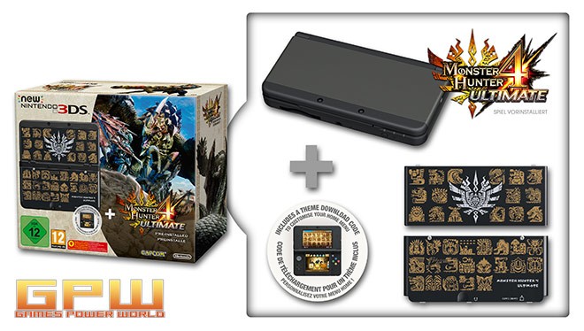 New Nintendo 3DS + Monster Hunter 4 Ultimate Pack Alle Videospieler, die vom Jagdfieber gepackt wurden, sollten sich auf das New Nintendo 3DS + Monster Hunter 4 Ultimate Pack* stürzen. Dieses Bundle umfasst neben einer digitalen Version des Spiels eine Nintendo 3DS-Konsole und Designcover in Schwarz sowie zusätzlich Monster Hunter 4 Ultimate Design-Cover. Nicht zuletzt gibt es einen Download Code für das neue Home Menü-Design Monster Hunter 4 Ultimate Hunter’s Seal. Das actionreiche Spiel eignet sich für sämtliche Konsolen der Nintendo 3DS-Familie. Der New Nintendo 3DS aber macht mit seinem neuen C-Stick die Kamerasteuerung extrem einfach.