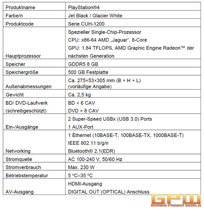 Technische Details – PlayStation® 4 Serie CUH-1200