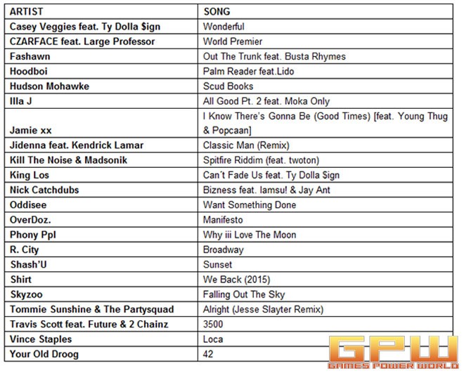 Hudson Mohawke, Jidenna feat. Kendrick Lamar, King Los, Travis Scott feat. Future & 2 Chainz und weitere Highlights auf dem Soundtrack Köln, 02. September 2015 – Ab sofort gibt eine Spotify-Playlist für NBA LIVE 16 den Fans einen Vorgeschmack auf den Soundtrack für die diesjährige Basketball-Simulation. Darin enthalten sind Tracks von Künstlern wie Fashawn feat. Busta, King Los feat. Ty Dolla $ign, Vince Staples, Nick Catchdubs feat. Iamsu! & Jay Ant, Oddisee sowie der brandneue Song von Illa J. EA SPORTS hat den 20 Songs umfassenden Soundtrack erneut in Zusammenarbeit mit dem renommierten DJ und stilprägenden Artist MICK zusammengestellt und die aktuell heißesten Artists und Songs mit Hit-Tracks von morgen gemixt. Auf dem NBA LIVE 16-Soundtrack feiern außerdem neue Songs von Kill The Noise & Madsonik, Your Old Droog, OverDoz., R. City und Shirt ihre Premiere. Der komplette Soundtrack ist verfügbar, sobald am 15. September die Gratis-Demo für Xbox Live und PlayStation Network bzw. NBA LIVE 16 am 01. Oktober für die Xbox One und PlayStation 4 in den Handel kommt.