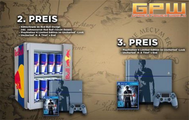 Als Hauptpreis der Uncharted Places winkt eine Reise für zwei Personen auf die Azoren zum Red Bull Cliff Diving, inklusive zwei Übernachtungen im VIP Executive Hotel. Am Veranstaltungstag geht es mit dem Boot an einen einzigartigen Schauplatz einer vorgelagerten Insel wo die spektakulären Sprünge der Athleten direkt vom Wasser aus bestaunt werden können. Abgerundet wird das Paket mit einer Limited Edition Uncharted 4-PS4 inklusive dem Spiel Uncharted 4: A Thief´s End. Damit auch auf Nathans letzter großer Reise nie die Energie ausgeht, wartet als zweiter Preis ein Red Bull-Kühlschrank inklusive einem Jahresvorrat Red Bull (12x24 Dosen) sowie ebenfalls eine PS4 im limitierten Uncharted 4-Design und dem dazugehörigen Spiel - über die sich auch der Gewinner des dritten Platzes freuen kann. Doch auch die Gewinne der Wochen-Challenges, wie zum Beispiel eine nagelneue PS4 (1TB), einen Evoc-Rucksack mit Uncharted Branding oder die Special Edition von Uncharted 4: A Thief´s End, können sich mehr als sehen lassen. Eine Auflistung aller Preise die im Zuge der Uncharted Places ergattert werden können ist unter folgendem Link zu finden.