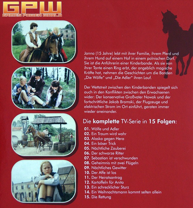 Janna (15 Jahre) lebt mit ihrer Familie, ihrem Pferd und ihrem Hund auf einem Hof in einem polnischen Dorf. Sie ist die Anführerin einer Kinderbande. Als sie von ihrer Tante einen Ring erbt, der angeblich magische Kräfte hat, nehmen die Geschichten um die Banden “Die Wölfe” und “Die Adler” ihren Lauf. Der Wettstreit zwischen den Kinderbanden spiegelt sich auch im Konflikt zwischen den Erwachsenen wider: Der konservative Großvater Nowak und der fortschrittliche Jakob Bromski, der Flugzeuge und elektrischen Strom im Ort einführt, geraten immer wieder aneinander.