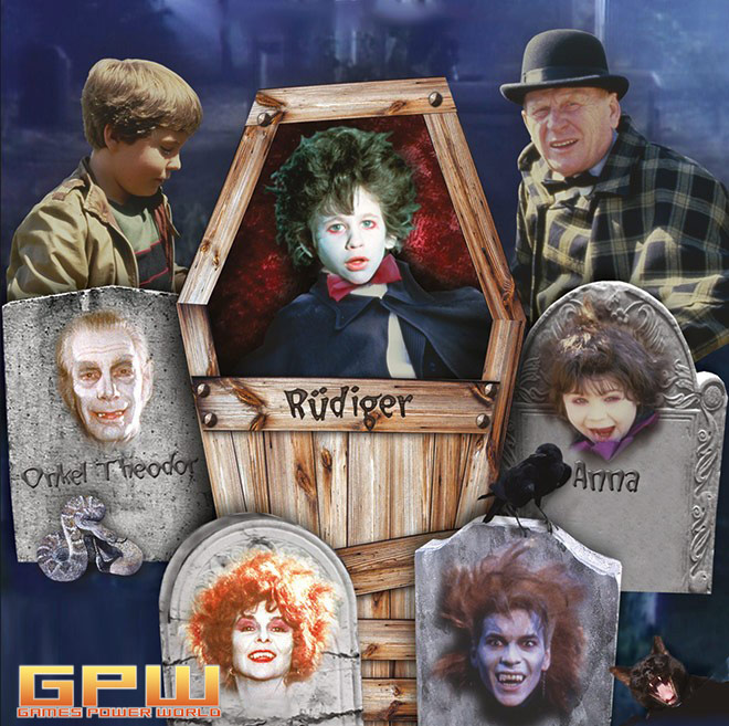 Der kleine Vampir ist die Kult-Kinderserie der 80er mit Anton Bohnensack (Christopher Stanton), den Vampiren Rüdiger (Joel Dacks), Anna (Marsha Moreau), Lumpi (Jim Gray), Tante Dorothee (Lynn Seymour), Onkel Theodor (Michael Gough) und natürlich nicht zu vergessen der Vampirjäger Herr Geiermeier (Gert Fröbe).