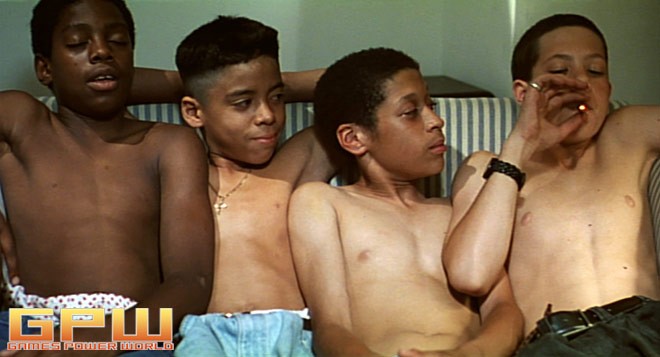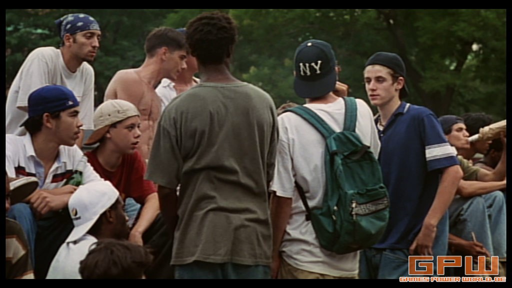 Später trifft sich Telly mit seinem Freund Caspar. Sie kaufen sich Dope mit Geld, das sie gerade Tellys Mutter geklaut haben. Total bekifft, verprügeln sie einen Schwarzen, der Caspar versehentlich angerempelt hat.