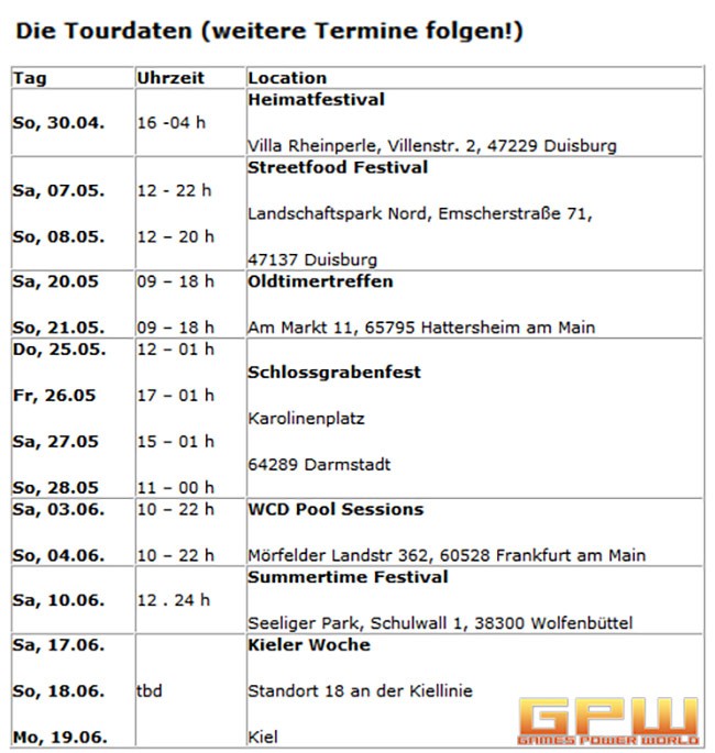 Das Nintendo Switch Team will ganz Deutschland für den neuen Spielspaß erobern. Als erstes stürmt es am 30. April das Festival Heimatmelodie in Duisburg. Nach einem zweiten Halt in der Ruhrmetropole am Ende der ersten Maiwoche geht es weiter zu Festivals und anderen Events in Hattersheim, Darmstadt, Frankfurt, Wolfenbüttel und nach Kiel zur Kieler Woche. Die Nintendo Fans dürfen sich mit Mario Kart 8 Deluxe in die bisher umfangreichste Version der kultigen Rennspiel-Serie stürzen. In der Rolle beliebter Nintendo-Helden jagen sie über 48 fantastische Pisten, steuern dabei ihre virtuellen Karts auch mittels echter Lenkbewegungen und können die Konkurrenz wieder mit allerhand lustigen Tricks und Schikanen auf Abstand halten. Die neue Schlau-Steuerung hilft dabei auch unerfahrenen Kartpiloten, zuverlässig in der Spur zu bleiben. Dazu kommt ein komplett neuer Schlachtmodus in 8 Arenen, neue Spielcharaktere und vielfältige Mehrspieler-Optionen, online wie offline. Die Besucher der Bulli-Tour erleben den actionreichen Titel, der ab 28. April im Handel erhältlich ist, nicht nur im TV-, sondern auch im mobilen Handheld-Modus. Mit ihm können sich bis zu acht Spieler gleichzeitig wilde Kart-Rennen liefern. Auch die abgedrehten Party-Spiele von 1-2-Switch sind wie geschaffen dafür, die neuartigen Möglichkeiten der Nintendo Switch zu demonstrieren. Denn zu jeder Konsole gehören gleich zwei Joy-Con-Controller, die unter anderem über Bewegungs- und Beschleunigungssensoren verfügen sowie über eine Infrarot-Kamera und eine HD-Vibrationsfunktion. In den Spielen kommt es auf geschickte Bewegungen und schnelle Reaktionen ebenso an, wie auf ein gutes Gehör und einen ausgeprägten Tastsinn. Bei reizvollen Minispielen wie Revolverhelden, Samuraitraining, Safeknacker, Schwertkampf oder Tanz mir nach gilt es immer, den Mitspieler im Auge zu behalten, und nicht wie gewohnt den Fernsehschirm! Über den Spielspaß hinaus bietet die Nintendo Switch-Tour noch eine besondere Gewinnchance: Alle, die ein Foto von sich und dem roten VW-Bulli unter #switchmoment hochladen, können bis Ende August an einer Verlosung teilnehmen. Zu gewinnen gibt es jeden Monat eine coole Polaroid snaptouch Sofortbild-Digitalkamera in knalligem Rot. Also: Es lohnt sich die Augen offen zu halten nach dem roten Nintendo Switch Bulli. Weitere Infos gibt es unter: https://event.nintendo.de