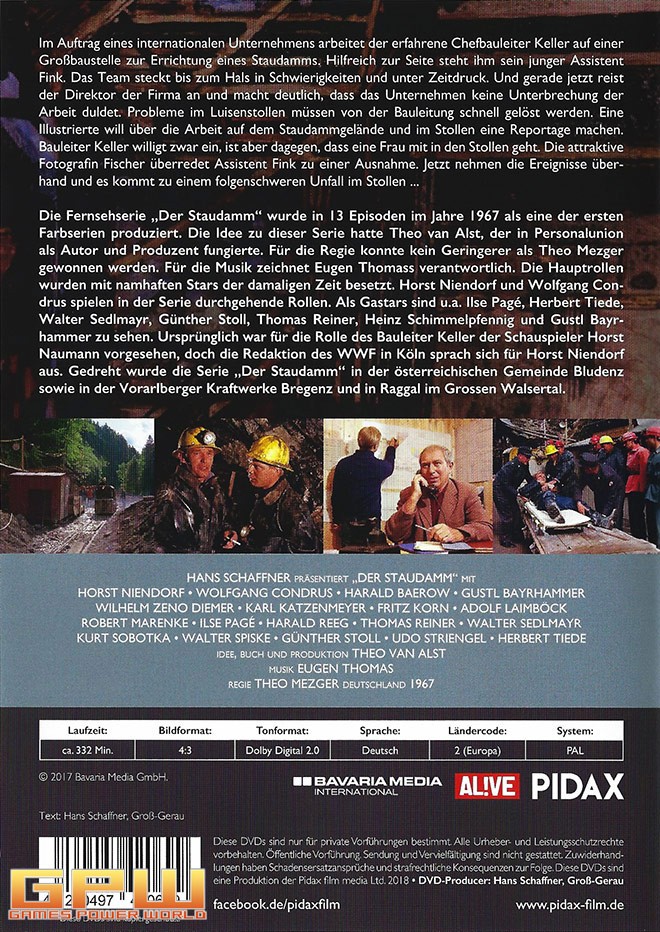 Der Staudamm Der Staudamm auf 2 DVDs von Pidax ist seit dem 2. Februar 2018 erhältlich. Mit der Der Staudamm bekommt ihr jetzt dank Pidax alle 13 Folgen der beliebten Abenteuerserie von 1967 das erste Mal auf DVD zu sehen. Es gibt wieder einige Stars dieser Zeit zu sehen, wie z.B. Horst Niendorf, Wolfgang Condrus, Harald Baerow, Gustl Bayrhammer, Ilse Pagé, Heinz Schimmelpfennig, Helmut Fischer u.v.a.