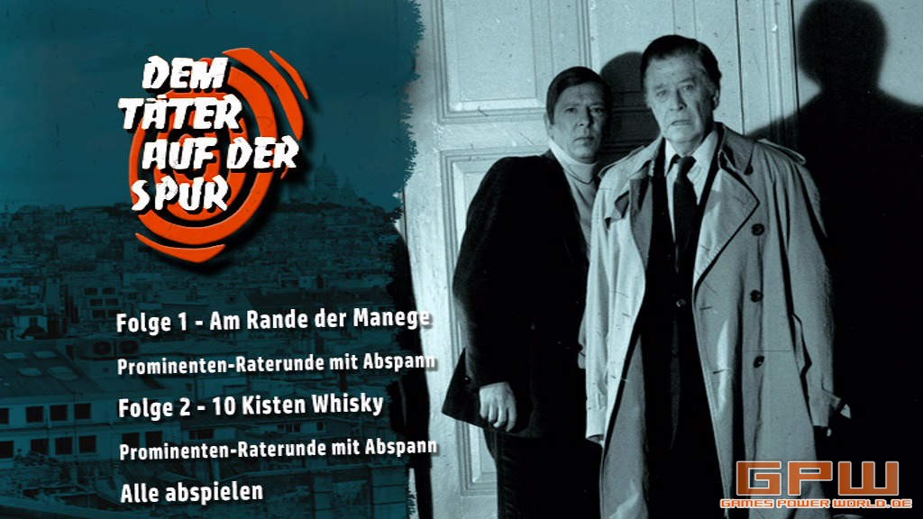 Mit der DVD-Box von Dem Täter auf der Spur bekommen wir 18 Folgen mit auch noch heute sehr bekannten Darstellern aus den 60ern/70ern wie Klaus Löwitsch, Peter Weck, Gerd Baltus, Horst Frank, Hansjörg Felmy, Bernd Herzsprung, Claus Wilcke, Heidi Brühl, Heinz Schubert, Uwe Friedrichsen u.a. und zudem auch noch bekannte Ratekandidaten wie Anneliese Rothenberger, Hans Rosenthal, Hans-Dietrich Genscher, Hansjörg Felmy, Joachim Fuchsberger, Katja Ebstein, Lieselotte Pulver, Reinhard Mey, Roberto Blanco, Walter Eschweiler u.a. auf 9 DVDs zu sehen.