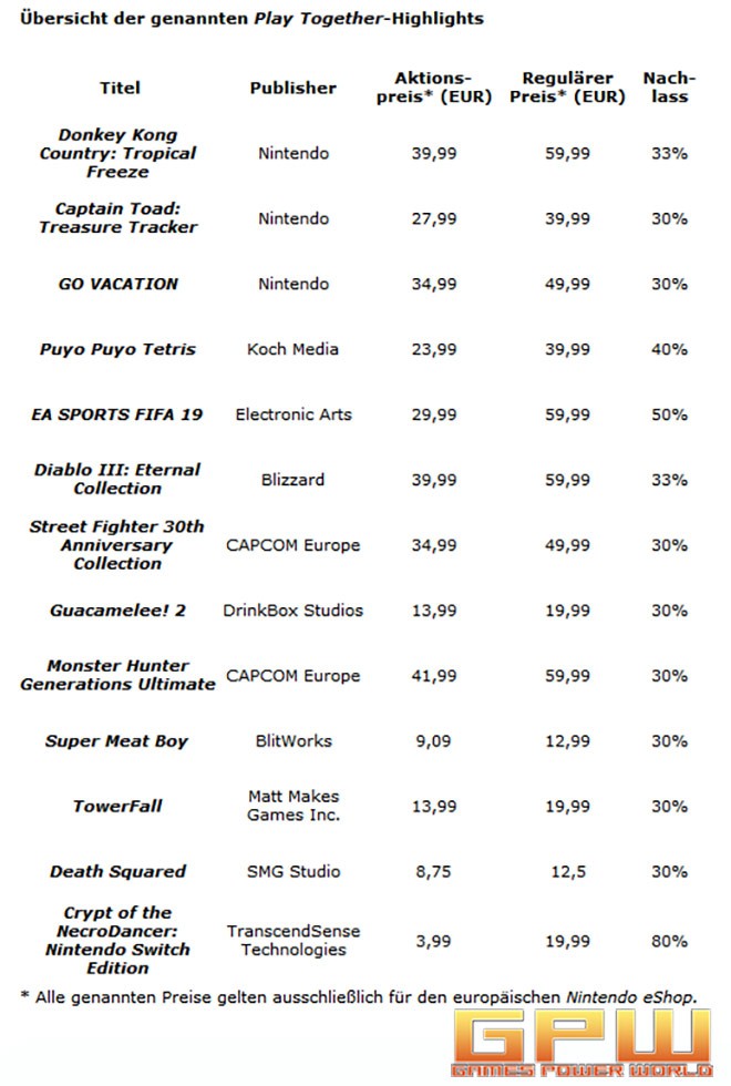Play Together: Europas Nintendo eShop bietet Spiele-Hits zu Aktionspreisen an