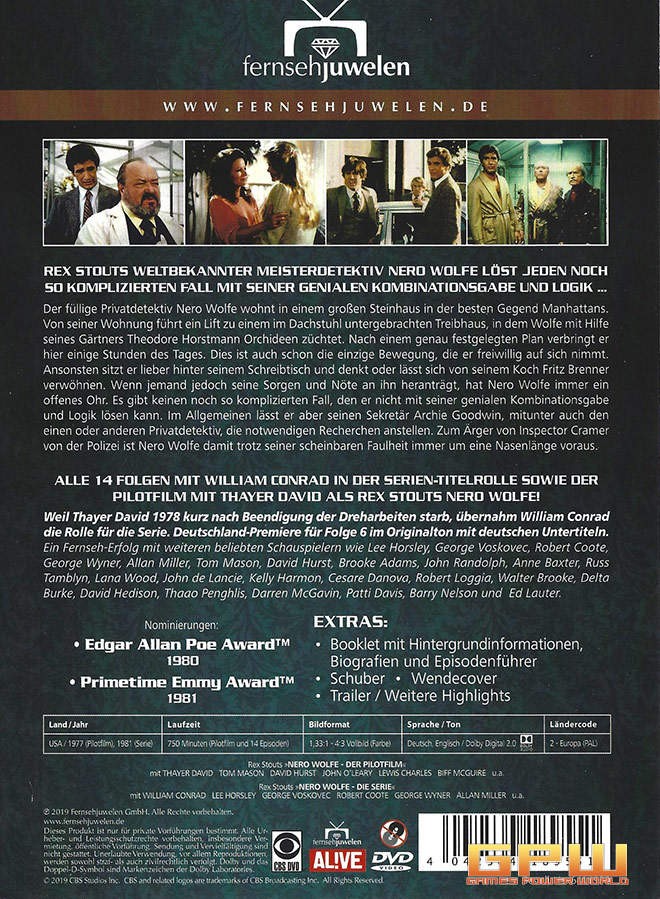 Nero Wolfe - Gesamtedition Nero Wolfe - Gesamtedition auf DVD von Fernsehjuwelen ist seit 5. April 2019 erhältlich. Mit der Nero Wolfe - Gesamtedition - Box bekommen wir dank Fernsehjuwelen die Kult-Krimiserie mit allen 14 Folgen und dem Pilotfilm von 1977 jetzt erstmals auf 4 DVDs zu sehen. Nero Wolfe eine Kult-Krimiserie der 80er >> Nero Wolfe - Gesamtedition (4 DVDs) hier kaufen << Produktinformation