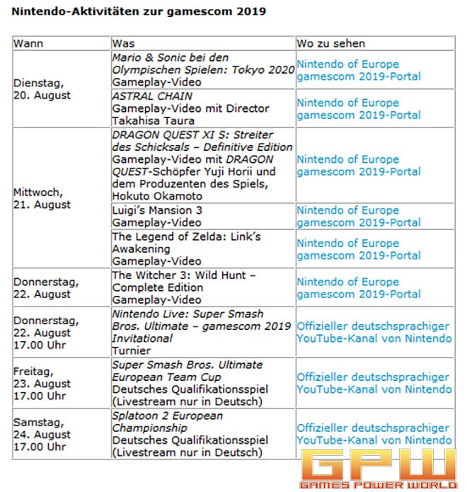 Noch bevor diese Videos online gehen, wendet sich der Director von Pokémon Schwert & Pokémon Schild Shigeru Ohmori von GAME FREAK an alle Spiele-Fans, die einen weiteren Blick auf die neue Galar-Region werfen möchten. Die Videobotschaft von Shigeru Ohmori zur gamescom 2019 ist auf auf YouTube sehen. Wer keins der Videos verpassen möchte, sollte im Laufe der Woche regelmäßig auf der offiziellen Website von Nintendo of Europe zur gamescom 2019 oder auf dem offiziellen deutschsprachigen Twitter-Kanal von Nintendo vorbeischauen. Fans hochkarätig besetzter Turniere sollten am Donnerstag, den 22. August um 17.00 Uhr auf dem offiziellen deutschsprachigen YouTube-Kanal von Nintendo vorbeischauen. Dann heißt es nämlich „Ring frei!“ für das Nintendo Live: Super Smash Bros. Ultimate - gamescom 2019 Invitational. Acht auserwählte europäische Spitzenspieler kämpfen um einen ganz besonderen Preis. Leon, Marc, Light und Skipper, die Gewinner der öffentlichen Online-Umfrage sind ebenso mit dabei wie Lancelot, Yetey, Iberyes und Sirjon, die von ihren Mitspielern nominiert wurden. Von diesen acht erfahrenen Kämpfern werden die vier besten zum Super Smash Bros. Ultimate World Challenge Cup nach Japan fliegen, der am 14. Oktober bei dem Event Nintendo Live in Kyoto ausgetragen wird. In einem speziellen Gala-Turnier treten sie dort als europäisches Team gegen qualifizierte Teams aus Japan und Nordamerika sowie gegen eine multinationale Auswahl von SpitzenspielerInnen an. Spiele-Neuheiten auf der gamescom Alle, die den Nintendo-Stand auf der gamescom in Köln besuchen, können über 20 Neuheiten für Nintendo Switch noch vor ihrem Verkaufsstart ausprobieren, darunter: