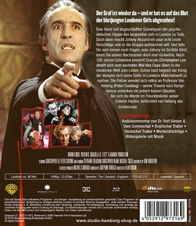 Dracula jagt Minimädchen (Dracula A.D. ’72) Dracula jagt Minimädchen ist ab heute (4. Oktober 2019) vom Studio Hamburg im Handel erhältlich. Mit dieser Dracula jagt Minimädchen (Dracula A.D. ’72) - Box bekommen wir wieder Christopher Lee als Graf Dracula und Peter Cushing als Professor Van Helsing in einer Neuauflage auf Blu-ray zu sehen. >> Dracula jagt Mini-Mädchen (Blu-ray) hier kaufen << Produktinformation