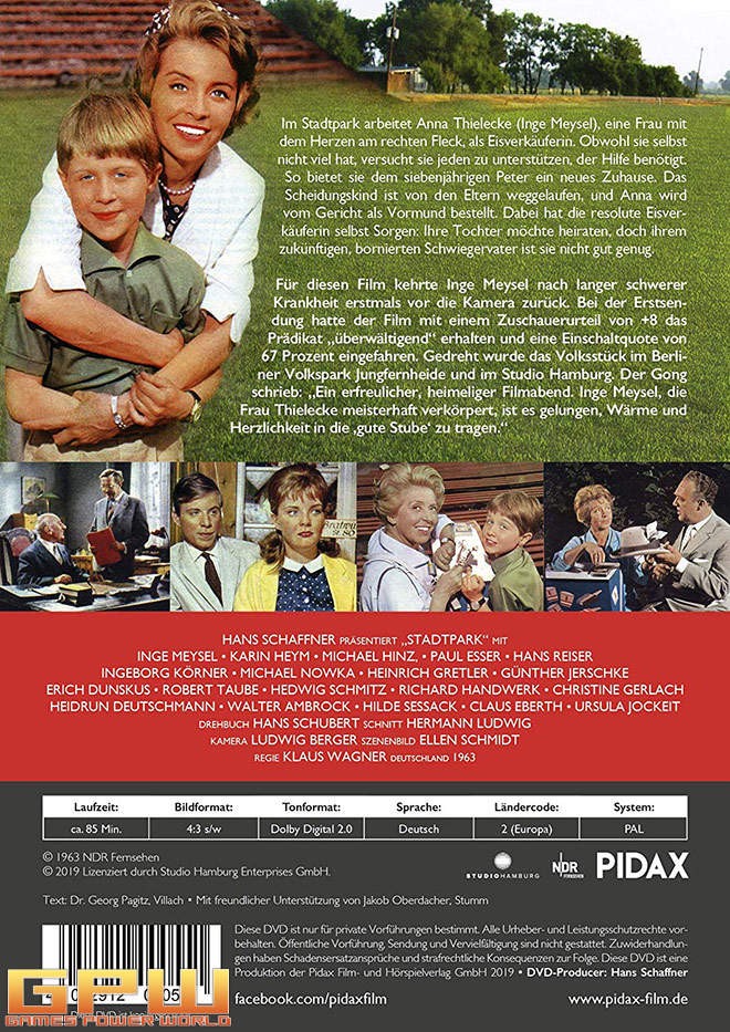Stadtpark auf DVD ist ab 29. November 2019 Mit der Stadtpark - Box bekommen wird den Film von 1963 mit Inge Meysel als Eisverkäuferin Anna Thielecke und Michael Nowka als siebenjährigen Peter Berger jetzt erstmals auf DVD zu sehen. >> Stadtpark (DVD) hier kaufen << Produktinformation: