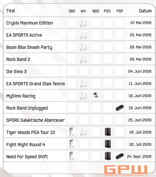 Releaseliste von ELECTRONIC ARTS für Mai 2009