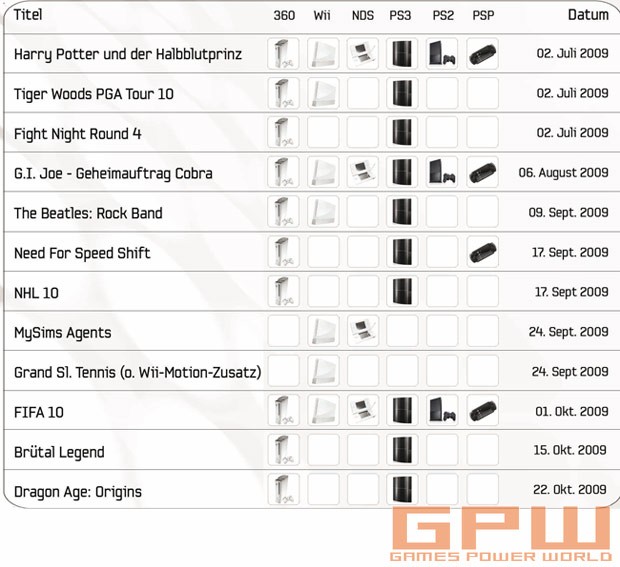 Releaseliste von ELECTRONIC ARTS für Juli 2009