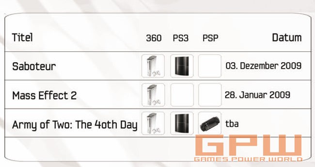 Saboteur (PC, PS3, Xbox 360) Die Pandemic Studios laden Sie ein, als Saboteur das ultimative Open-World-Action/Adventure zu erleben. Rächen Sie den Verlust Ihrer besten Freunde und bringen Sie Ihre Todfeinde im besetzten Paris zur Strecke. Sie kämpfen sich durch diese einzigartige Welt, klettern über die Dächer von Paris und fahren Autorennen, mit dem einen Ziel: die Leben derjenigen zu zerstören, die Ihnen alles genommen haben. In der zwielichtigen Welt eines Saboteurs, der im Paris der 1940er lebt, sind die Frauen erotisch, die Missionen episch und Rache süß. Willkommen im besetzten Paris, einer einzigartigen offenen Welt, in der Sie ein Saboteur sind. Sie spielen Sean Devlin, ein taffes irisches Raubein. Seit ein deutscher Offizier ihm alles genommen hat, wartet der Rennsport-Mechaniker auf die Chance Rache zu üben. Der Zeitpunkt zur Vergeltung ist JETZT gekommen. Unterstützt von der französischen Résistance, dem britischen Geheimdienst, einem gewaltigen Waffenarsenal, einem guten Orientierungssinn, Geschick und reiner Muskelkraft können Sie sich an Seans Feinden rächen.
