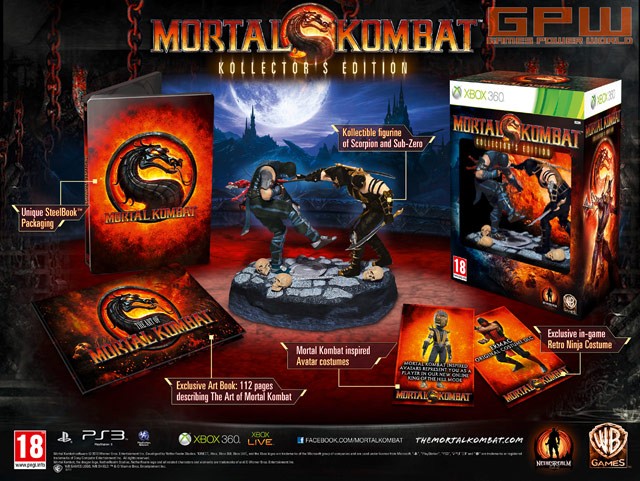 Mortal Kombat: Details und Abbildungen zur Kollector's Edition Warner Bros. Interactive Entertainment und die NetherRealm Studios veröffentlichen heute vier brandneue Screenshots und drei Abbildungen zur europäischen Kollector’s Edition von Mortal Kombat welches am 19. April 2011 für Xbox 360 und PS3 erscheint. Die Kollector’s Edition von Mortal Kombat enthält: - Exklusives Art Book: Buch mit 110+ Seiten zeigt The Art of Mortal Kombat mit original Konzeptzeichnungen - Einzigartige SteelBook™ Verpackung - Exklusives, im Spiel verfügbares Retro-Ninja-Kostüm: Alternatives Ninja Kostüm für Ermac – inspiriert von seinem ursprünglichen Charakter-Design - Xbox360-Exklusiv: individualisiere deinen Xbox Live Avatar mit Kostümen inspiriert von Mortal Kombat - PS3-Exklusiv: Mortal Kombat Avatare und Themes Das neue Kapitel der kultigen Beat’em-Up-Serie ist die erfolgreiche Rückkehr zum Mortal Kombat-Franchise und bietet eine Neuentwicklung der klassischen 2D-Kampfmechanik. Durch die neue Grafikengine werden die bei den Fans besonders beliebten Finishing-Moves detaillierter dargestellt als je zuvor. Zudem gibt es in Mortal Kombat eine Reihe neuer Gameplay-Mechanismen. Dazu gehören ein Tag-Team-Modus und ein besonders ausgereifter Story-Mode. Spieler wählen aus einem großen Kämpferkader beliebter Figuren aus und treten gegen ihre Freunde in einem klassischen Zweikampf an – oder sie greifen auf einen der zahlreichen neuen Spielmodi zurück.