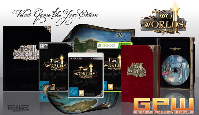 Two Worlds II verbreitet königlichen Glanz Velvet-Edition vereint das preisgekrönte RPG mit dem Add-on Pirates of the Flying Fortress Karlsruhe, 15. Juli 2011 -- TopWare Interactive macht den Herbst 2011 zu Rollenspielfesttagen. Denn ab 18. Oktober sorgt die "Two Worlds II Velvet GotY Edition" des weltweiten RPG-Verkaufsschlagers für königlichen Glanz in den Regalen! Die speziell gestaltete und limitierte Sammlerbox ist bei der PC/Mac-Version in schwarzen bzw. bei der Konsolenversion in purpurnen Samt eingeschlagen und glänzt mit verstärkten Echtmetallecken im antiken Messinglook. Aus demselben Echtmetall prangt zudem ein reliefgeprägtes "Two Worlds II"-Logo auf dem Cover. Doch nicht nur die Optik lässt Gamerherzen höher schlagen, sondern vor allem der Inhalt! Mit der multilingualen Version von "Two Worlds II" sowie dem Add-on "Pirates of the Flying Fortress" plus allen anderen, bislang erschienen Upgrades bietet die Velvet-Box unzählige Stunden Spielspaß! Weitere Edelextras sind eine riesige, doppelseitige Weltkarte und der hochwertige, 5 x 1,3 cm große Piratenkopf-Ansteckpin. Der besondere Clou: dieses Schmuckstück existiert in verschiedenen Ausführungen auch als exklusives Ingame-Item und verschafft dem Spieler, sobald auf der Rüstung befestigt, fette Extraboni bei den Charakterwerten. Keine Frage, dass jeweils einer dieser Spezialcodes auch der Velvet-Edition beiliegt! Genauso wie eine weitere Bonusdisk mit Artwork, Wallpapern, Videos, dem Extended Soundtrack sowie zwei zusätzlichen PvP-Multiplayermaps. Mehr Antaloor geht nicht! Die limitierte Sammlerauflage erscheint für PC/Mac, Xbox 360 und PlayStation 3.