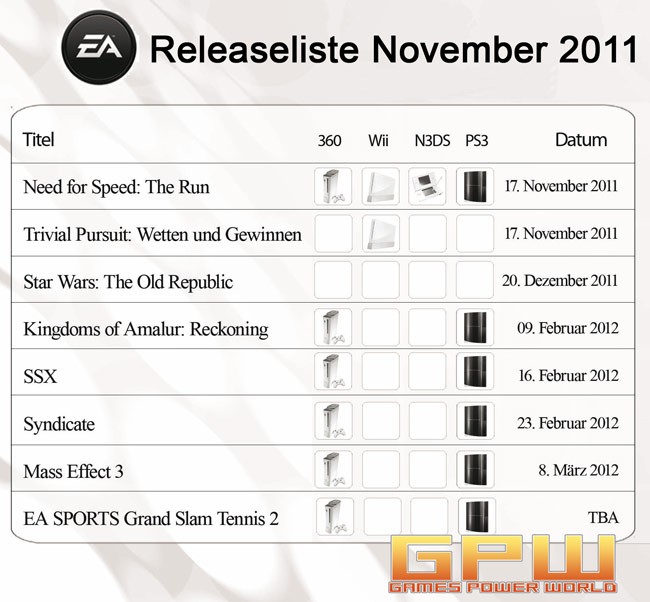Electronic Arts Releaseliste November 2011