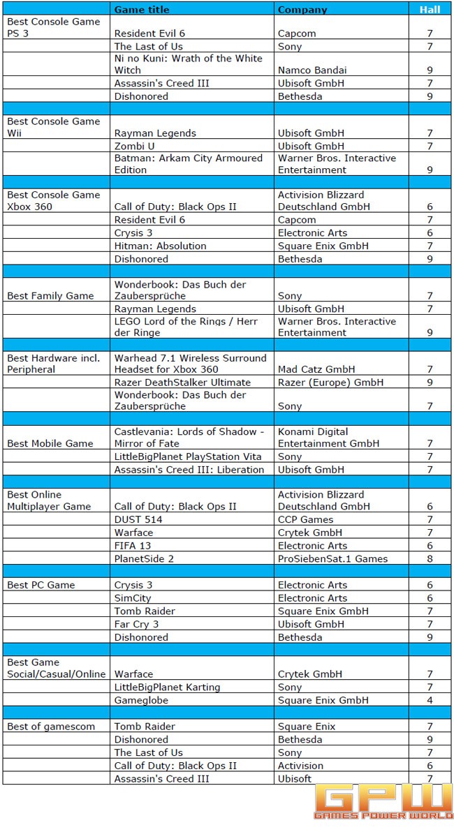 Die Jury hat entschieden: . Aus mehr als 100 eingereichten Spielen hat die internationale Fachjury der gamescom ihre Favoriten in zehn Kategorien gewählt