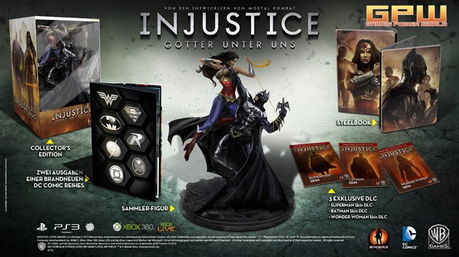 Injustice: Götter unter uns - Collector's Edition enthüllt Warner Bros. Interactive Entertainment und DC Entertainment kündigen heute eine Collector‘s Edition zum Superhelden-Prügelspiel Injustice: Götter unter uns (in Österreich und der Schweiz unter dem Titel Injustice: Gods Among Us erhältlich) an, welches sich aktuell in den NetherRealm Studios in Entwicklung befindet. Die Collector‘s Edition ist ab April 2013 in limitierter Stückzahl für Xbox 360® und PlayStation®3 im Handel erhältlich. Die Injustice: Götter unter uns Collector’s Edition wird enthalten: Was, wenn unsere größten Helden plötzlich zu unserer größten Bedrohung würden? Mit Injustice: Götter unter uns bereichern die NetherRealm Studios - Schöpfer der ultimativen Prügelspiel-Serie Mortal Kombat - das Genre um ein neues spannendes Franchise. Der neueste Titel der preisgekrönten Spieleschmiede wartet mit einer fesselnden Story und DC-Kultfiguren wie Batman, The Flash, Harley Quinn, Solomon Grundy, Superman und Wonder Woman auf. In einer Welt, in der die Grenzen zwischen Gut und Böse verschwimmen, tragen Helden und Schurken epische Massenschlachten aus. Weitere Infos gibt es auf www.injustice.com. WB Games @ Twitter: https://twitter.com/WarnerGamesGer
