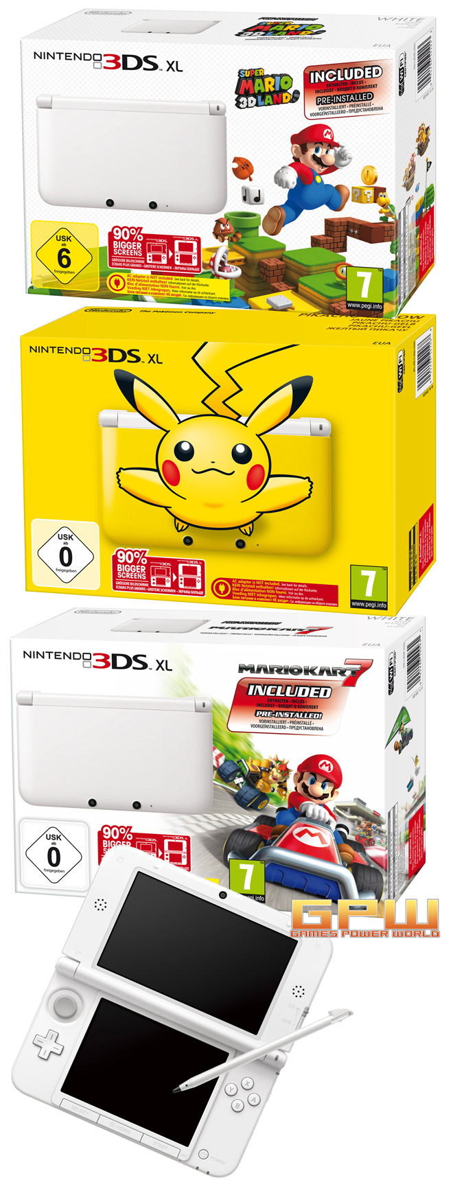 Weihnachtsüberraschung: Ob an Heiligabend Schnee fällt, weiß zurzeit noch niemand, doch die Nintendo-Fans können ganz sicher sein, eine weiße – oder eine gelbe – Weihnacht zu erleben. Denn rechtzeitig vor dem Fest erscheinen zwei neue limitierte Editionen des Nintendo 3DS XL - und zwar in edlem Weiß und in fröhlichem Pikachu Gelb. Bei den Super Mario-Fans dürfte der Nintendo 3DS XL in Weiß ganz weit oben auf der Wunschliste stehen. Denn eines von zwei besonders beliebten Mario-Spielen für den mobilen Handheld ist bereits vorinstalliert. Sie haben die Wahl zwischen dem witzig-rasanten Rennspiel Mario Kart 7 oder dem innovativen Jump & Run-Spaß Super Mario 3D Land. Der weiße Nintendo 3DS XL mit Mario Kart 7 kommt am 16. November in den Handel, die Variante mit Super Mario 3D Land am 30. November. Pokémon-Freunde wiederum dürfen sich auf den 7. Dezember freuen. An diesem Tag erscheint die limitierte Ausgabe des Nintendo 3DS XL Pikachu in Gelb. Auf der Konsole prangt das Bild von Pikachu, dem wohl bekanntesten und beliebtesten aller Pokémon. Alle drei neuen Versionen des Nintendo 3DS XL erscheinen in begrenzter Stückzahl. Wer ein echter Mario- oder Pokémon-Fan ist – oder noch ein passendes Weihnachtsgeschenk für einen von ihnen sucht – sollte also schnell zugreifen. Weitere Informationen zu Nintendo finden sich im Internet für Twitter-Nutzer unter @NintendoDE oder über den offiziellen Nintendo Deutschland YouTube-Kanal unter www.youtube.com/NintendoDeutschland.