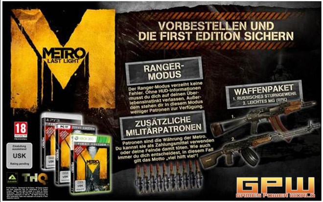 THQ kündigt heute eine spezielle Sonderedition von Metro: Last Light für den deutschsprachigen Raum an.