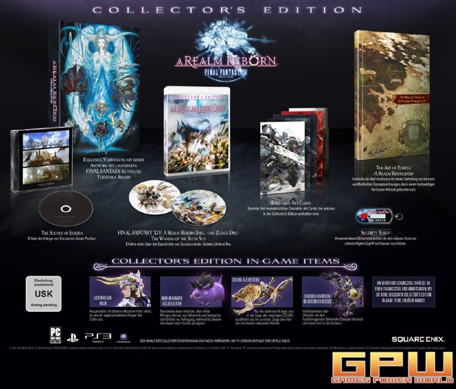 Final Fantasy XIV: A Realm Reborn erscheint Square Enix stellt außerdem Extras für Vorbesteller und die Collector’s Edition vor Hamburg (23. Mai 2013) – Square Enix Ltd., Herausgeber der interaktiven Unterhaltungsprodukte von SQUARE ENIX® in Europa und anderen PAL-Gebieten, gibt heute bekannt, dass FINAL FANTASY® XIV: A Realm Reborn™ und die FINAL FANTASY XIV: A Realm Reborn Collector’s Edition ab sofort vorbestellt werden können. Das Erscheinungsdatum von FINAL FANTASY XIV: A Realm Reborn ist für den 27. August 2013 angesetzt, sowohl für PlayStation®3 als auch Windows PC. Die monatlichen Abonnementgebühren beginnen bei 10,99 EUR. FINAL FANTASY XIV: A Realm Reborn kommt zur unverbindlichen Preisempfehlung von 24,99 EUR (PC) und 34,99 EUR (PS3) bzw. 59,99 EUR (PC) und 69,99 EUR für die Collector's Edition in den Handel.