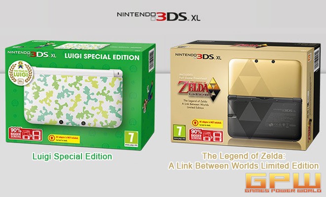 Die Luigi Special Edition erscheint am 1. November. Die weiße Konsole ist rundum mit Luigis Silhouette verziert – selbstverständlich in Grün, der Lieblingsfarbe des sprunggewaltigen Nintendo-Helden. Dieser ist übrigens in der Vergangenheit keineswegs untätig gewesen: Vor genau 30 Jahren hat Luigi in Mario Bros. sein Videospiel-Debüt gegeben – für Nintendo Grund genug, das Jahr 2013 zum „Luigi-Jahr“ auszurufen. Seither war Luigi – mal gemeinsam mit seinem Bruder Mario, mal solo – in zahllosen Abenteuern mit von der Partie, unter anderem in den Nintendo 3DS-Titeln Luigi’s Mansion 2 und Mario & Luigi: Dream Team Bros. Während sich Luigi im letztgenannten Spiel mit seinem alten Widersacher Bowser und dem unheimlichen Fledermauskönig Antasma herumschlagen musste, übernahm er im turbulenten Wii U-Abenteuer New Super Luigi U die Hauptrolle und stellte seine Fähigkeiten in 82 eigens auf ihn zugeschnittenen Parcours unter Beweis. Für Fans der Videospielreihe The Legend of Zelda wiederum dürfte der 22. November ein ganz besonderer Tag werden. Dann nämlich macht sich Link in The Legend of Zelda: A Link Between Worlds auf in ein neues Abenteuer. Am gleichen Tag erscheint zudem die The Legend of Zelda: A Link Between Worlds Limited Edition des Nintendo 3DS XL. Sie ist zusammen mit einem Download-Code erhältlich, mit dem sich Zelda-Fans das neue Spiel direkt aus dem Nintendo eShop herunterladen können. Das neue Modell sticht sofort ins Auge: Seine Oberseite ist in edlem Gold gehalten, die Unterseite in Schwarz. Auf beiden Seiten ist jeweils ein Triforce-Logo angebracht. Öffnet der Spieler nun die Konsole, bildet sich das charakteristische doppelte Triforce-Symbol, das alle Zelda-Fans in erwartungsvolle Begeisterung versetzt. Die Handlung des Spiels knüpft an die des Super NES-Klassikers The Legend of Zelda: A Link to the Past von 1992 an. Auf der aktuellen Reise ins Königreich Hyrule ist Hauptperson Link mit einer ganzen Reihe neuer Fähigkeiten ausgestattet. So ist es ihm beispielsweise möglich, als Gemälde über Wände zu gleiten – eine Gabe, die ihm beim Knacken der zahlreichen Rätsel ausgezeichnet zu Hilfe kommt. Ebenfalls neu: Der Held kann im neuen Spiel die zahlreichen Verliese in beliebiger Reihenfolge durchstöbern. Die Gegenstände, die er dafür benötigt, kann Link bereits früh im Spiel von einem Charakter namens Ravio erwerben. Übrigens: Schon die Verpackung hält für die Freunde der Videospielreihe von The Legend of Zelda: A Link Between Worlds eine kleine Überraschung bereit. Diese ist nämlich mit einem Wendecover ausgestattet, das es ermöglicht, zwischen dem klassischen goldenen Titelbild der The Legend of Zelda-Reihe oder einer aktuellen Version in Farbe zu wählen. Doch ob man nun ein altgedienter Link-Fan oder ein Neuling in Hyrule ist – dass sich die neueste Folge der Reihe im heimischen Videospiel-Regal richtig gut machen wird, steht jetzt schon fest.