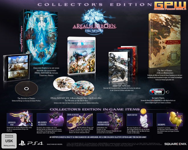 Final Fantasy XIV: A Realm Reborn - Square Enix freut sich bekannt geben zu können, dass die PlayStation®4-Version von Final Fantasy XIV: A Realm Reborn am 14. April 2014 erscheinen wird. Die Vorbestellung des Titels ist ab sofort möglich. Als Boni erhalten Vorbesteller einen frühen Zugriff auf das Spiel vor dem offiziellen Start sowie mit der Mogry-Kappe und einer Sith-Puppe als Begleiter, zwei Ingame-Gegenstände. Ebenfalls am 14. April 2014 wird eine limitierte Collector’s Edition mit diversen speziellen Gegenständen veröffentlicht. Ein Wechsel zur PS4-Version ist für derzeitige Spieler der PS3-Version kostenlos! Detaillierte Informationen zu den Vorbesteller-Boni sowie zu den Inhalten der Collector’s Edition und technischen Spezifikationen der PS4-Version können Sie der angehängten Pressemitteilung entnehmen. Wie Spieler den Vorbestellungscode erhalten, hängt vom Händler ab, bei dem diese ihre Bestellung aufgegeben haben. Die Codes werden ab Anfang April versendet. Details werden zu einem späteren Zeitpunkt auf der offiziellen Website des Produkts veröffentlicht.