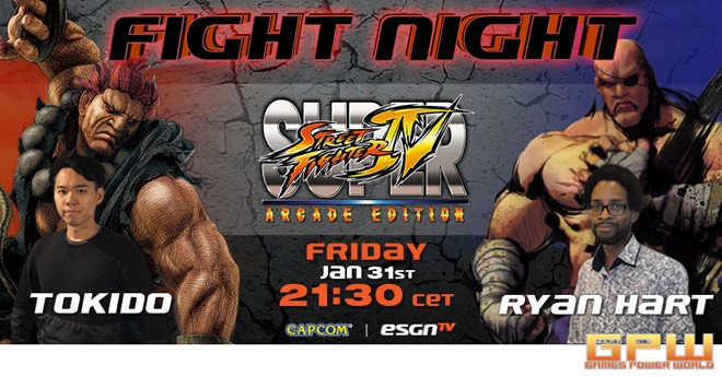 ESGN TVs Fight Night: Super Street Fighter IV Edition auf der Zielgeraden Die Jagd nach den 25.000 US-Dollar Preisgeld ist in vollem Gange: Heute setzt ESGNTV seine Fight Night: Super Street Fighter IV Edition fort, in der die verbliebenen Pro-Gamer um Ehre und Preisgelder kämpfen. Die heutigen Gewinner werden ihr Können am kommenden Montag wieder unter Beweis stellen müssen. Das Finale der ersten Season der Super Street Fighter IV Edition wird am Dienstag, den 4. Februar, gesendet. Täglich um 21:30 Uhr zeigt die Fight Night: Super Street Fighter IV Edition die besten Spieler aus der ganzen Welt, die mit all ihren Listen, Taktiken und Fähigkeiten versuchen, in den virtuellen Arenen von Super Street Fighter IV ebenso talentierte Gegner zu bezwingen. Als Kommentatoren werden Ryan "Gootecks" Gutierrez und Nick "Tasteless" Plott allen eSportlern Beat `em up-Action vom Feinsten präsentieren.