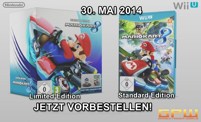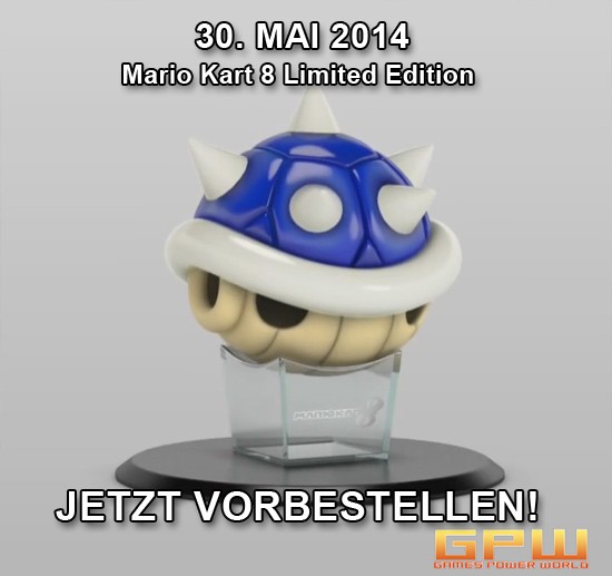 Mario Kart 8 Limited Edition steht in den Startlöchern Wenn Mario Kart 8 am 30. Mai für Wii U erscheint, gehen die versiertesten Fahrer des Pilzkönigreichs an den Start um der Schwerkraft zu trotzen und natürlich um sich packende Duelle zu liefern. Nintendo hat heute gleich zwei Neuigkeiten bekannt gegeben, die Fans der Rennspielserie begeistern dürften: Zum einen kann in Kürze die Mario Kart 8 Limited Edition vorbestellt werden, und zum anderen fällt am 27. März der Startschuss für eine besondere Promotion-Aktion in Verbindung mit dem SNES-Klassiker Super Mario Kart. Die Mario Kart 8 Limited Edition enthält neben einem Exemplar des Spiels einen blauen Stachi-Panzer, der auf einem durchsichtigen Sockel thront. Mario Kart-Fans, die schon einmal Bekanntschaft mit diesem ganz besonderen Item gemacht haben, wissen, wie maßgeblich es den Ausgang eines Rennens beeinflussen kann. Das exklusive Paket erscheint am 30. Mai und kann in Kürze vorbestellt werden. Es ist erhältlich, solange der Vorrat reicht! Einen optischen Eindruck des Pakets liefert der neueste Trailer. Wer schon vor dem 30. Mai seine Reaktionen schärfen und die Reifen quietschen lassen möchte, dem sei verraten, dass der SNES-Klassiker Super Mario Kart am 27. März für 7,99 Euro als Wii U Virtual Console-Titel im Nintendo eShop veröffentlicht wird. Es handelt sich dabei um die US-Version des Spiels, die mit einer Bildrate von 60hz läuft. Im Rahmen einer Promotion-Aktion können sich Spieler, die Super Mario Kart bis zum 30. Juni 2014 erwerben, einen Rabatt in Höhe von 7,99 € auf das neue Mario Kart 8 sichern. Dazu müssen sie zwischen dem 30. Mai und dem 30. Juni 2014 Mario Kart 8 im Nintendo eShop erwerben, nachdem sie zuvor den SNES-Klassiker gekauft haben. Voraussetzung für dieses Angebot ist, dass der Kauf auf derselben Wii U-Konsole stattfindet.