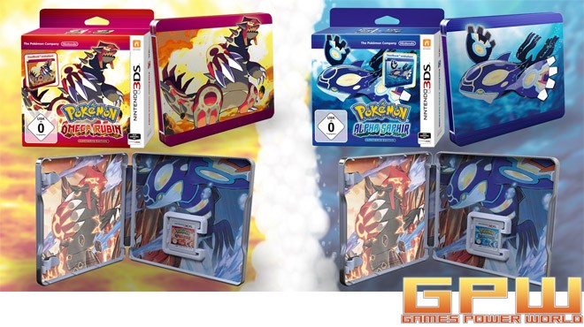 Neue Pokémon-Titel erscheinen auch als Limitierte Edition mit SteelBook Die neuen Abenteuer Pokémon Omega Rubin und Pokémon Alpha Saphir starten im November auf Nintendo 3DS und 2DS Alle Pokémon-Fans sind zu zwei weiteren, abenteuerlichen Expeditionen in die Hoenn-Region eingeladen. Am 28. November geht’s los. An diesem Tag kommen die beiden heiß ersehnten, neuen Titel der Kultspielserie in den Handel: Pokémon Omega Rubin und Pokémon Alpha Saphir für die mobilen Konsolen Nintendo 3DS und Nintendo 2DS. Heute gab Nintendo bekannt: Um den Aufbruch ins neue Abenteuer gebührend zu feiern, erscheinen die beiden Titel auch als Limitierte Edition, denen abgesehen von der herkömmlichen Spieleverpackung zusätzlich eine zweite als SteelBook beiliegt. Die Pokémon Omega Rubin – Limitierte Edition und die Pokémon Alpha Saphir – Limitierte Edition dürften begehrte Sammlerstücke und der Blickfang jeder Spielekollektion werden.