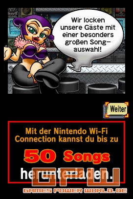 | Beschreibung Jam with the Band Jam with the Band macht den Nintendo DS zum tragbaren Musikstudio Für die Musikfreunde unter den Nintendo-Fans heißt es demnächst: Lautstärkeregler an ihrem Handheld aufdrehen, abrocken und Spaß haben. Denn am 21. Mai erscheint Jam with the Band, ein außergewöhnlich kreatives Spiel, das die Konsolen der Nintendo DS-Reihe in vielfältig einsetzbare Instrumentensammlungen verwandelt. Jam with the Band ermöglicht es, eigene Versionen bekannter Songs zu programmieren, sie mit seinen Freunden zu teilen oder sich in ausgelassene Jam Sessions zu stürzen. Dafür steht den Spielern eine umfangreiche Liste klassischer Stücke und populärer Hits zur Verfügung. Das neue Programm, das ein einzigartiges Spielvergnügen bietet, erscheint exklusiv für Nintendo DS und Nintendo DSi. Mit Jam with the Band setzt Nintendo seine Reihe beliebter Musikspiele wie Rhythm Paradise oder Wii Music fort. Der Song-Editor des Spiels lädt dazu ein, musikalisch kreativ zu werden und eigene Titel aufzunehmen. Dabei kann man bis zu acht von 50 Instrumenten einsetzen, die insgesamt zur Auswahl stehen. So schlägt man beispielsweise mit Hilfe des Touchpens die Saiten einer virtuellen Gitarre auf dem berührungsempfindlichen Bildschirm des Nintendo DS an. Und wer auf die schlichte Schönheit von Vokalmusik steht, der kann seine Melodie auch ganz einfach in das integrierte Mikrofon summen – oder im Karaoke-Modus singen. Das Programm analysiert sogar die Sangeskünste des Nutzers und schlägt ihm die für ihn am besten geeigneten Musik-Genres vor. Mit 50 bereits enthaltenen Songs und etwa 50 weiteren, die zum Download bereit stehen, bietet Jam with the Band eine Bandbreite, die praktisch jedem Musikgeschmack gerecht wird. Darüber hinaus können die Spieler über die Nintendo Wi-Fi Connection ihre eigenen Kreationen hoch- und die Songs anderer Nintendo-Fans herunterladen. Zudem zeigt ihnen eine spezielle Website die jeweils neuesten und beliebtesten Musiktitel an. Gemeinsam musizieren macht selbstverständlich am meisten Spaß. Mit nur einer Nintendo DS-Karte können bis zu acht Handheld-Musiker sich zu einer fröhlichen Jam Session zusammentun. Der faszinierende Mehrspieler-Modus wartet mit immer höheren Schwierigkeitsgraden auf: Zunächst genügt es eine bis vier Tasten zu drücken, dann acht bis zehn und schließlich gilt es auch noch den Touchpen richtig einzusetzen. Alle Wii-Besitzer haben obendrein die Möglichkeit, die TV-Konsole mit dem Nintendo DS zu verbinden und ihre Songs über das Soundsystem ihres Fernsehers zu hören. Dazu können sie sich kostenlos einen Live-Kanal für Jam with the Band auf ihre Wii laden und anschließend mit bis zu sieben Freunden gemeinsam Musik machen. Damit noch immer nicht genug, bietet ihnen die Nintendo Wi-Fi Connection freien Zugang zu einer ganzen Reihe von Songs und anderen Inhalten zum Herunterladen. Mit Jam with the Band werden Nintendo DS und Nintendo DSi zu Musikstudios für die Westentasche. Und wer schon immer Lust hatte, einmal als Musiker, Sänger oder Komponist kreativ zu werden, der darf sich diese aufregende Spiele-Neuheit nicht entgehen lassen. Eine Auswahl aus den 50 vorinstallierten Songs: Darunter auch einige beliebte Nintendo-Melodien: Bildergalerie Weitere Infos auf G-P-W Jam with the Band macht den Nintendo DS zum mobilen Tonstudio 21.05.2010 - 20:19