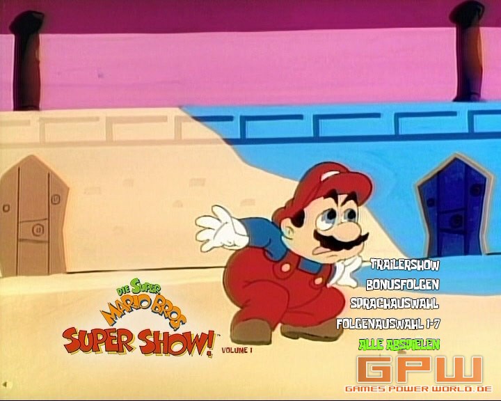 Die Super Mario Bros. Super Show!, Vol. 1 Die Super Mario Bros. Super Show! (Originaltitel: The Super Mario Bros. Super Show!) ist die 65-teilige US/Kanada Serie von 1989. Von den 65 Folgen sind 52 Folgen die Super Mario-Folgen und die letzten 13 Folgen sind die The Legend of Zelda - Zeichentrickserie die wir hier auch vorgestellt hatten. Die Erstausstrahlung im Deutschen Fernsehen lief ab den 3. Februar 1991 auf RTL.