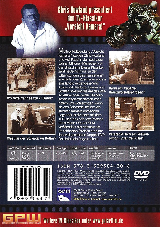 Vorsicht Kamera! 3 Stunden der Versteckten Kamera mit Chris Howland auf DVD Vorsicht Kamera! auf DVD vom POLAR Film ist seit dem 5. Dezember 2006 im Handel erhältlich. Mit der DVD-Box von Vorsicht ... |
