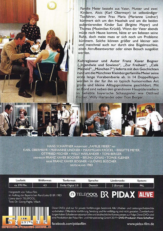 Familie Meier die komplette 28-teilige Serie der 80er Jahre auf 3 DVDs Familie Meier auf DVD von Pidax ist ab 26. Juli 2019 im Handel erhältlich. Ihr bekommt mit Familie Meier dank Pidax alle 28 ... |