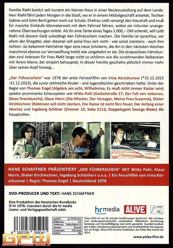 Der Führerschein der Film von 1978 auf DVD Der Führerschein auf DVD von Pidax ist seit 27. November 2014 erhältlich. Mit der Der Führerschein - Box bekommen wir dank Pidax den Kultfilm, mit Klaus Herm ... |