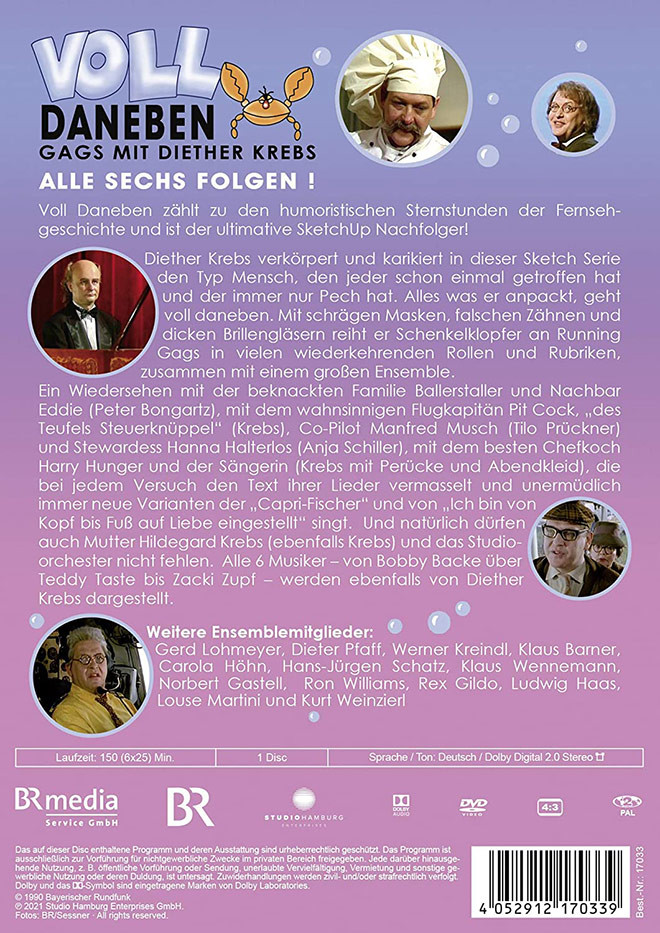 Voll Daneben - Gags mit Diether Krebs Voll Daneben - Gags mit Diether Krebs mit allen 6 Folgen wird vom Studio Hamburg am 07. Mai 2021 als Neuauflage auf 1 DVD rausgebracht. Alle Folgen von Voll Daneben - Gags mit Diether Krebs waren in Deutschland das erste Mal ab 24. Oktober 1990 bis November 1990 im Bayerisches Fernsehen zu sehen und wurde erst vom 09. Februar 1991 bis 11. September 1991 auch in der ARD gezeigt.
