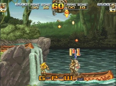 Bei Metal Slug handelt es sich um einen klassischen 2D-Shooter im Stile eines Probotector. Man kämpft im Dienste der Armee gegen eine Schar von Rebellen und im späteren Verlauf der Story auch gegen fiese Außerirdische. Die Story ist natürlich, wie bei einem Arcade Titel zu erwarten völlige Nebensache, dient aber dennoch einem der wichtigsten Stützpfeiler der Serie, dem Spaß. Und diesen hat man in Fülle. Sei es der einerseits teilweise sehr schräge Humor, der in einigen der wenigen Cutscenes zu sehen ist oder kleinere Details im Gameplay, wie z.b. befreite Gefangene, die einem zum Dank im wahrsten Sinne des Wortes ihre letzte Unterhose schenken. Aber der größte Spaßfaktor kommt natürlich über das Gameplay selbst.