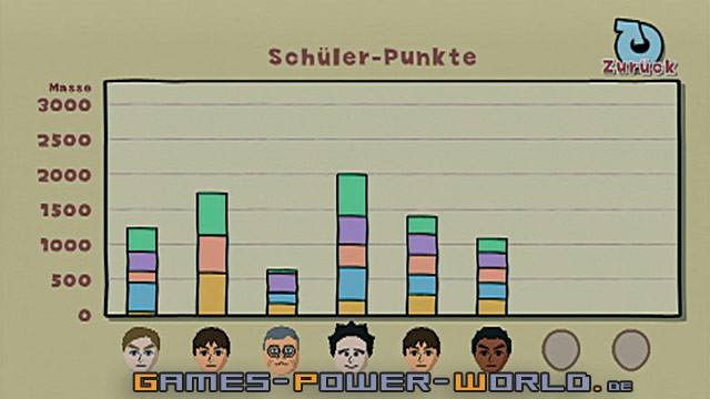 Nichts besonderes, aber es passt. Ein wenig Gemurmel in der Aula, die Wii-Mote gibt ermutigende Kommentare vor jeder Aufgabe und am Ende wird gejubelt. Passend, aber unspektakulär.