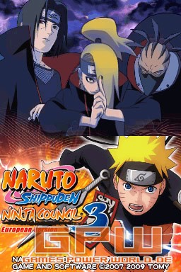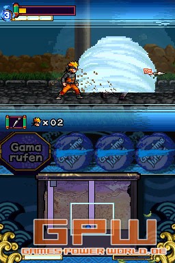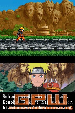 Und wieder einmal mehr könnt ihr mit eurem Nintendo DS euch auf eine abenteuerliche Reise dem Ninja Naruto begeben. Nachdem Naruto zweieinhalb Jahre mit Jiraiya trainiert hat und nun wieder in sein Heimatdorf Konoha Gakure zurück gekehrt ist, muss Naruto feststellen das eine geheime Organisation namens Akatsuki in sein Dorf eingedrungen ist. Also macht ihr euch mit Naruto und seinen Freunden auf die Reise um herauszufinden was diese Akatsuki im Schilde führen. Zu beginn des Spiels habt ihr nur die Möklichkeit zwischen dem Story-Modus, Drahtloser-Modus, und Wi-Fi-Modus. Im Story-Modus könnt ihr mit Naruto und zwei anderen Kämpfern eurer Wahl spielen, und euer ziel ist es verschiedene Missionen zu meistern um herauszufinden was die Asatsuki vorhaben. Ihr habt eine Karte auf der euch die jeweiligen Level angezeigt werden die ihr dann nacheinander durchspielen könnt. Ihr könnt euch leider nicht mehr frei durch Konoha Gakure bewegen so wie beim vorgänger. Beim Drahtloser-Modus und beim Wi-Fi-Modus könnt ihr mit 2-4 anderen Spielern in den Kampf ziehen. Natürlich könnt ihr wie bei Naruto üblich verschiedene Jutsus anwenden. Wobei jeder Kämpfer verschiedene Jutsus hat. Insgesamt bietet das Spiel 12 Kämpfer wobei ihr zu beginn nur 5 Hauptfiguren habt. Diese 5 sind Naruto, Sakura, Rock Lee, Neji und Kakashi. Die anderen müssen erstmal freigespielt werden. Die Grafik des Spiels macht einen sehr guten Eindruck wobei der Sound leider nicht so toll ist. Es kommt keinen Sprachausgabe in dem Spiel vor, stattdessen muss man sich so eine langweilige sich immer wiederholende Musik anhören.