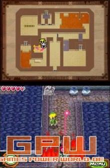 In traditioneller Zelda Manier gilt es zuerst zu verschiedenen Dungeons, die jeweils unterschiedliche Elemente als Thema haben, zu reisen. Und da überall im Land Schienen verteilt sind bzw. waren, diese müssen nämlich erst einmal Stück für Stück wieder hergestellt werden, liegt nun mal nichts näher als den Zug als Fortbewegungsmittel zu wählen. Mit dem Stylus, der das ganze Spiel über das wichtige und einzige Steuerelement ist, zeichnet ihr eine Strecke auf die Karte, die euer – im Laufe des Spiel modifizierbarer Zug – entlang dampft. Während eurer Fahrt begegnen euch ab und zu feindliche Geschöpfe die ihr punktgenau mit dem Stylus vom Bildschirm fegen könnt. Eine andere und viel gefährliche Bedrohung stellen gegnerische, verhexte Züge dar, die ebenfalls auf den Schienen entlangfahren. Solltet ihr mit einem von diesen Dämonenzügen zusammenstoßen, heißt es Game Over und ihr müsst von der letzten Haltestelle neu beginnen.