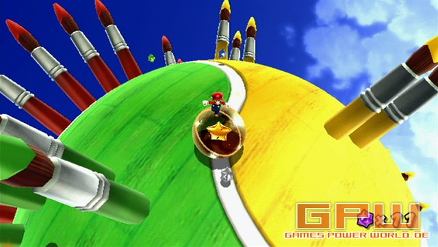 Während Bowsers Anschlag habt ihr einem kleinen Luma geholfen, der euch die Sternenkraft verleiht. Auch formen sie für euch einen Planeten in der Form von Marios Kopf, der euer Raumschiff und eure Basis darstellt. Es gibt wieder Münzen und Sternensplitter, doch das wirkliche Objekt der Begierde bleiben die Sterne und natürlich die Power-Sterne, die euer Raumschiff zu weiteren Galaxien fliegen lässt.
