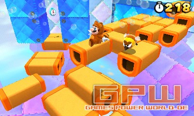 Neben dem Tanuki-Anzug wartet noch der brandneue Bumerang-Anzug und natürlich die Klassiker Feuerblume, Pilz und Superstern auf euch. Je ein Item lässt sich wie in New Super Mario Bros. DS auch wieder auf den Touchscreen legen und wartet nur darauf von euch zum Einsatz zu kommen.