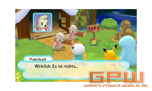 Jedenfalls dürft ihr euch dann im Prolog erst einmal für eines von 5 Pokémon entscheiden, über welches ihr die Kontroller übernehmt. Zur Auswahl stehen Pikachu, Serpifeu, Floink, Ottaro und Milza. Sekunden später wählt ihr aus den nunmehr vier übrig gebliebenen Pokémon einen Partner, der euch anschließend als KI folgt, bzw. anfangs eher anführt.