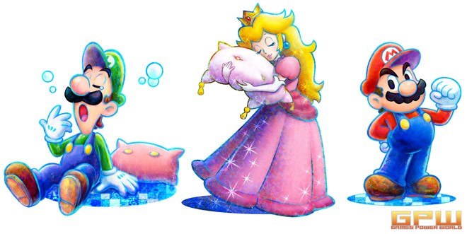 Mario & Luigi - Dream Team Bros. Mario goes Inception und taucht in Luigis Träume ein! Wie so oft, steht Prinzessin Peach zu Beginn der Story im Vordergrund. Eigentlich ja bei jeder Geschichte, bei der Mario mitspielt. Bei Mario & Luigi - Dream Team Bros. geht es damit los, dass Prinzessin Peach auf die Insel La Dormita eingeladen wird, um dort ihren Urlaub zu verbringen. Ein Schelm, wer denkt, dass die Prinzessin entführt werden soll. Doch wie die Lemminge läuft Prinzessin Peach mit einigen Toads auf das Urlaubsluftschiff, dass sie auf die Insel bringen soll. Anstatt, dass, wie sonst üblich, Bowser die arme Prinzessin direkt greift, kommen auch noch Mario und Luigi an Board. Dort wird ihnen von Dr. Schlummermehr eröffnet, dass auf der Insel die Voraussetzungen für einen besonders tiefen Schlaf gegeben sind. Während man noch darüber rätselt, was das genau bedeuten soll, kommt doch ein Bösewicht. Ein großes lilafarbenes Monster stößt die meisten Passagiere von Board. Im Eifer des Gefechts stürzt auch noch euer Luftschiff ab. Glücklicherweise seid ihr direkt über eurem Reiseziel: La Dormita. Beim Aufprall wacht Luigi auf, dessen Traum das lilafarbene Monster schuf.