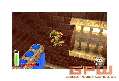 Wie so viele Zelda-Spiele hat auch A Link Between Worlds dieses "eine" Feature, was das Spiel zu dem macht was es ist. Bei Minish Cap war es die Fähigkeit zu schrumpfen, bei Spirit Tracks die Einbindung von Zügen als Reisemittel, etc., etc. Und beim neusten 3DS-Ableger ist es das "zum -Gemälde-werden". Bereits früh zu Beginn erhaltet ihr diese Fähigkeit und könnt fortan an jeder vertikalen, flachen Wand zu einer 2D-Link-Krizzelei werden. So kommt man über tiefe Schluchten und durch enge Durchgänge. Apropos Durchgänge: Überall in Hyrule sind magische Spalten zu finden, mit denen ihr in die dunkle Welt von Lorule wechseln könnt. Dies ist ein wichtiger Bestandteil von Rätseln und Reisen, denn auch wenn sich beide Welten ähneln, sind sie natürlich nicht komplett gleich. Mal steht in der einen Welt ein Berg etwas anders, mal taucht in der anderen Welt plötzlich eine Schlucht auf, usw.