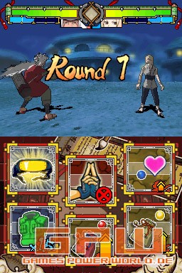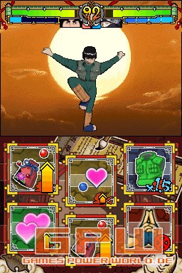 Während jeden Kampfes habt ihr die Möglichkeit über denn Touchscreen Gegenstände zu verwenden die euch helfen denn Kampf leichter zu Gewinnen wie z.B. Angriffe und Verteidigung werden stärker, ihr seit kurze Zeit unbesiegbar, eure Energie und euer Chakra wird wieder voll usw. Bei jedem Kampf stehen euch 6 Gegenstände zur verfügung, die sich von Kampf zu Kampf ändern.